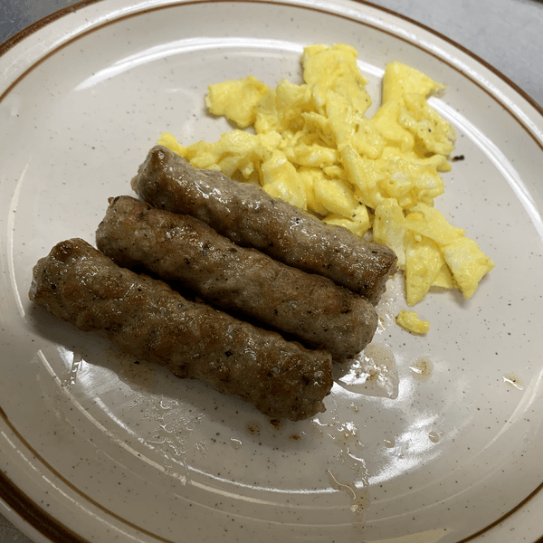 For children 12 and under includes bacon, or sausage, and a drink!